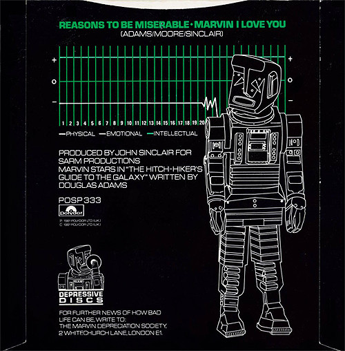 The song involves Marvin describing his views on life (“I’d feel a little better if they broke me up for spares”, “If I had my time again, I’d rather be a lemming”), to a rather clever synthpop backing track.